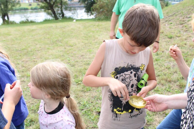Kinder bauen den Frau-Harke-TurmWandertag September 2021 – Die Lerngruppe Elbe besucht die Havel